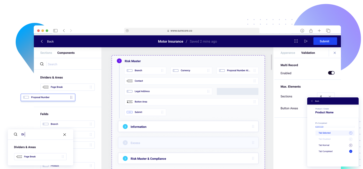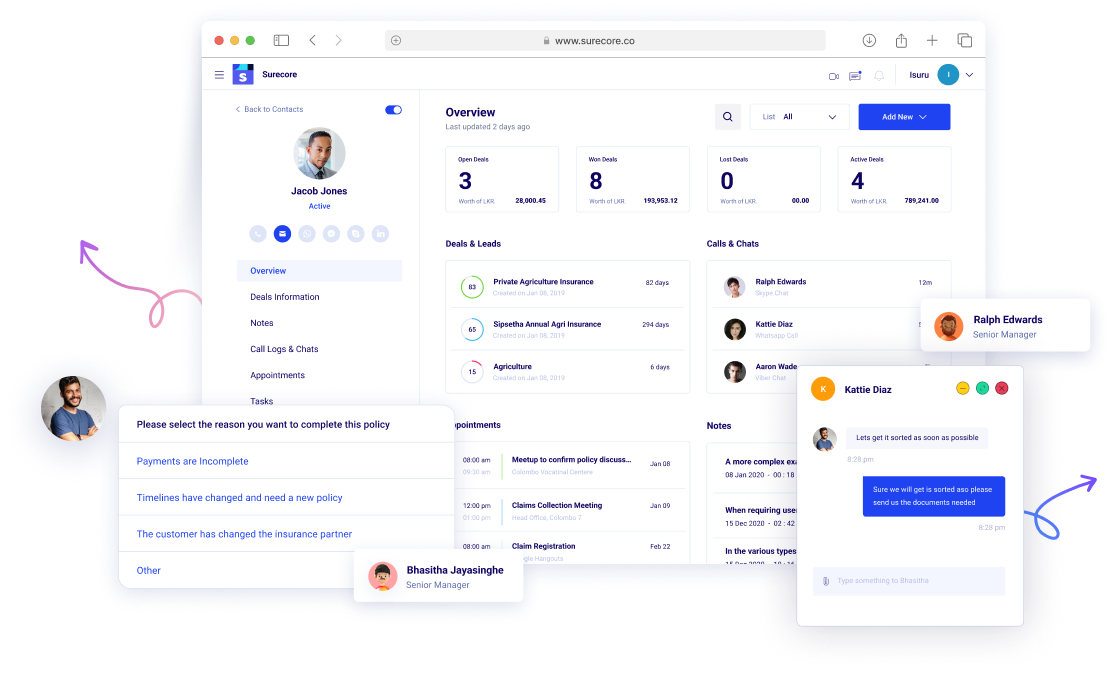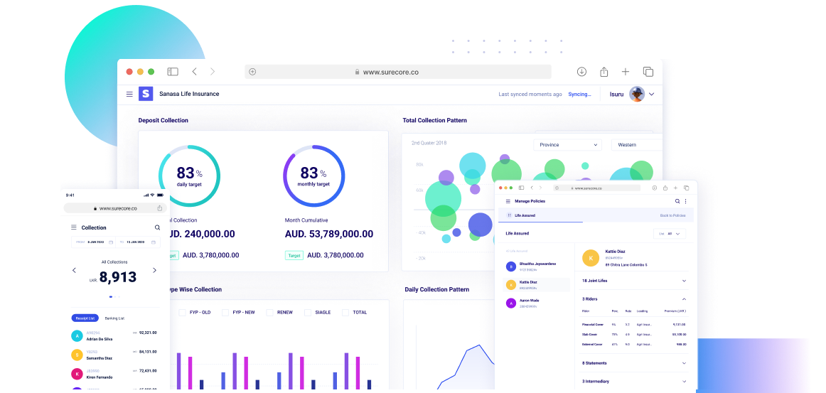 Surecore is a workflow-oriented core insurance application suite with integrated web portals & mobile apps for Sales staff, Customers, Service Providers, External Organisations, and all levels of management, which is optimized to complete individual workflows within minimum time removing all manual work.